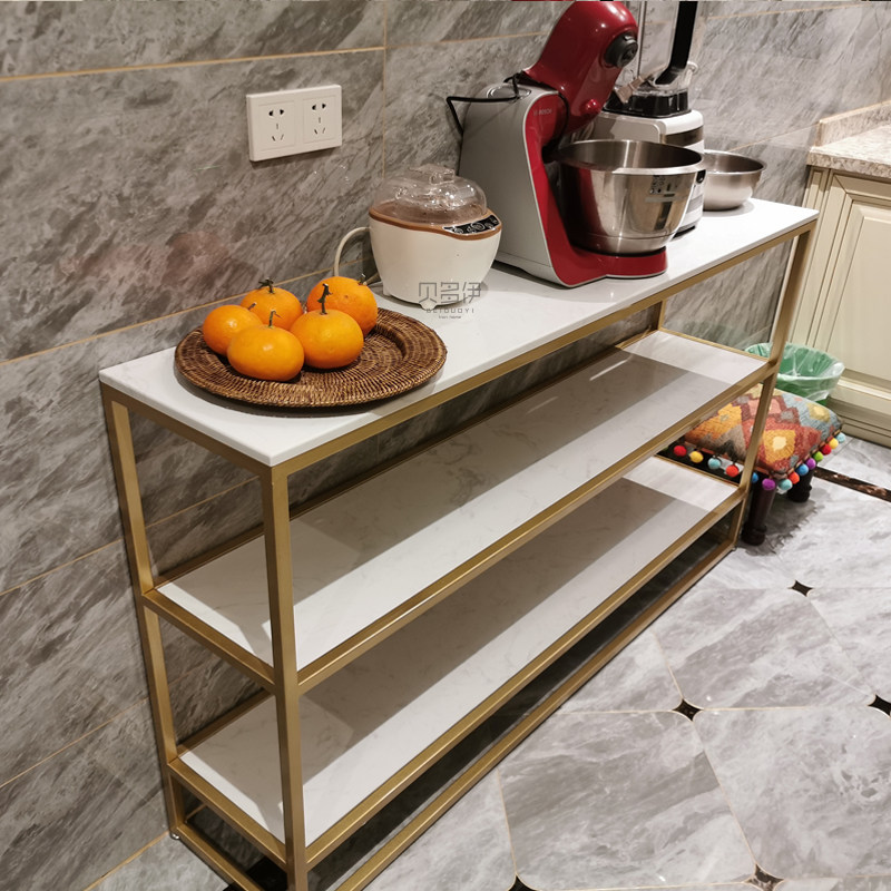 Nordic marble kitchen rack leaning against wall to ground microwave oven?Car Island Terrace table Vegetable Table Strip Narrow Table With Narrow Table Bar Table