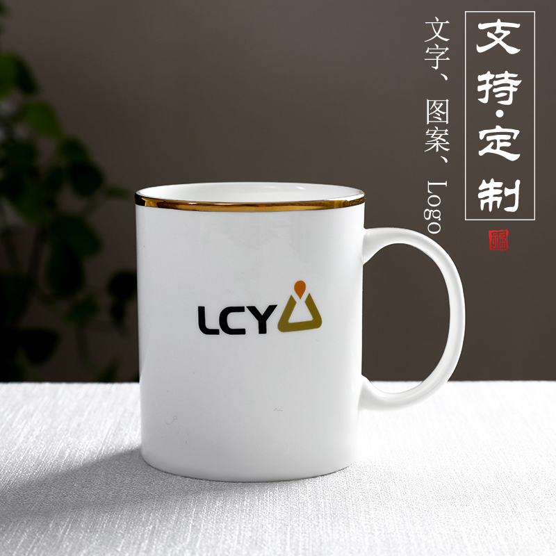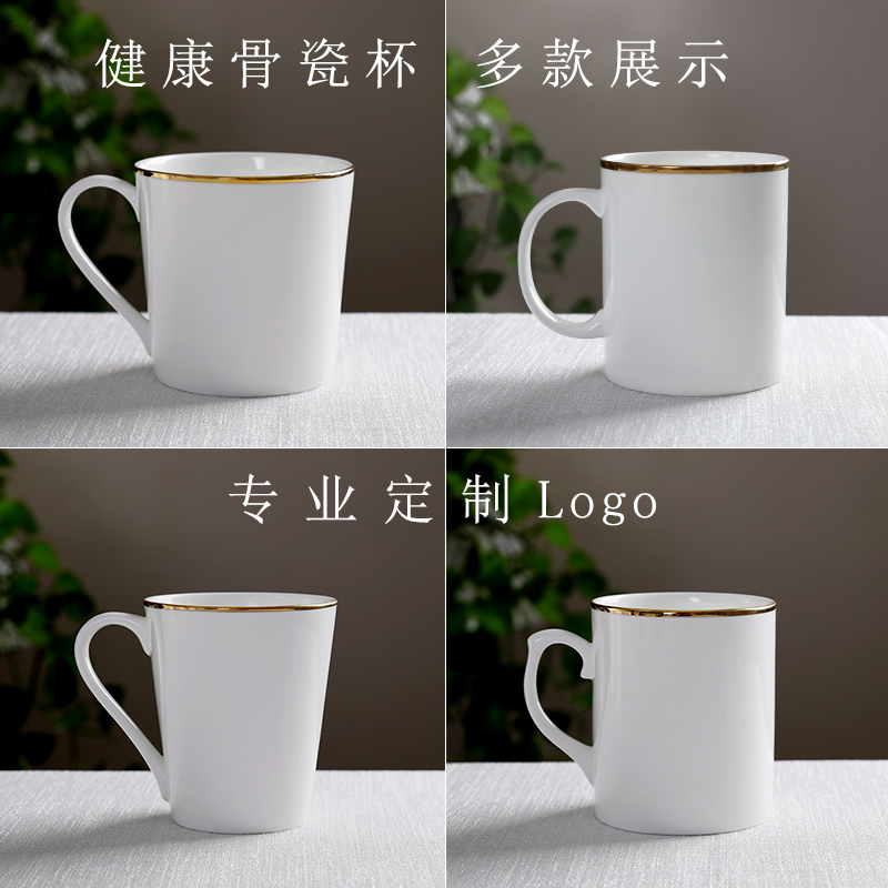 Bone Porcelain Mark Cups Ceramic Cups Water Cups Cups Gold Side Water Glass Business Teacup Custom Logo Printed