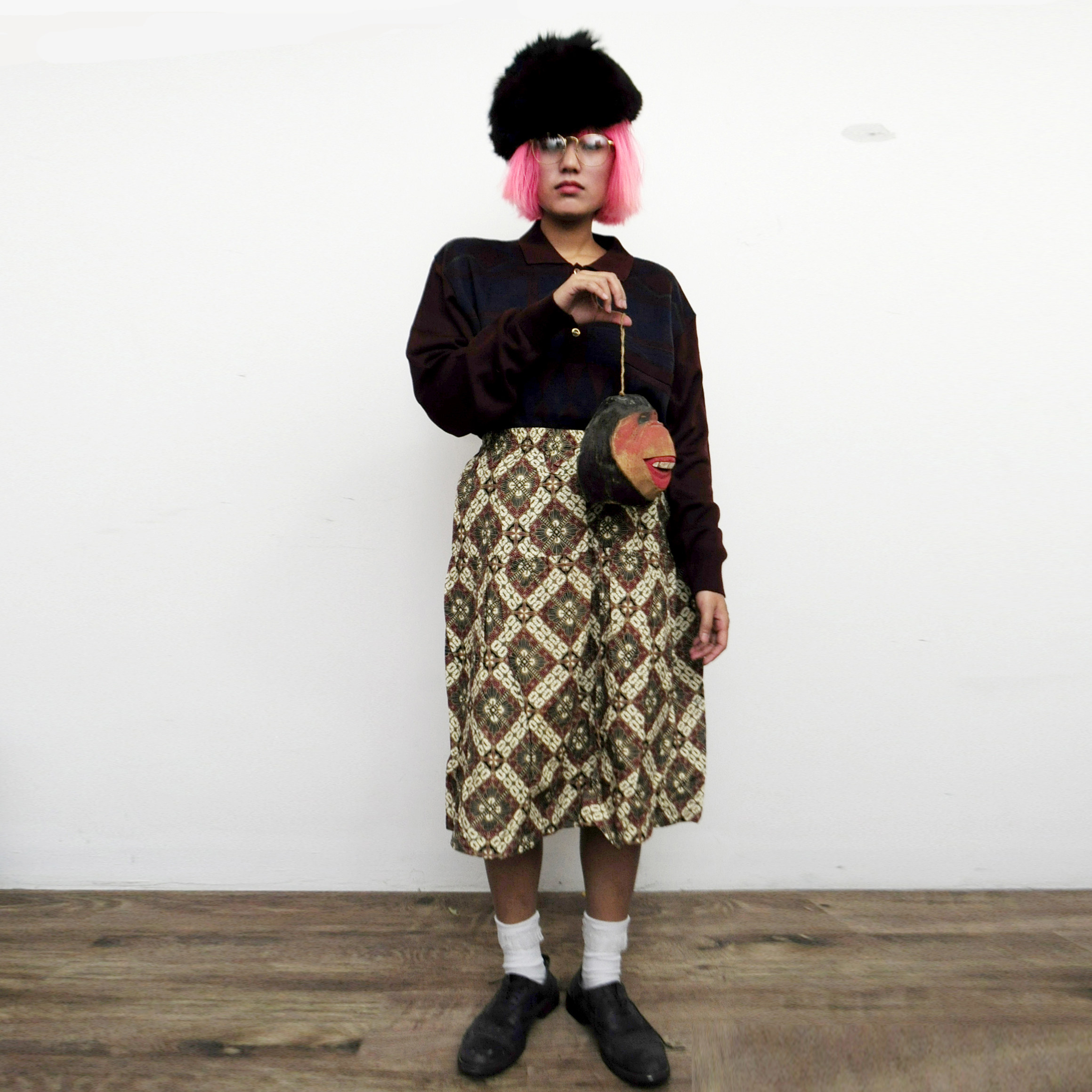 Gold retro ornaments, stretch pink base coat, metal stitching clutch, black woolen coat, wild skirt, European antique bag (old items have traces of years), golden shirt, lambskin coat, velvet base coat, black