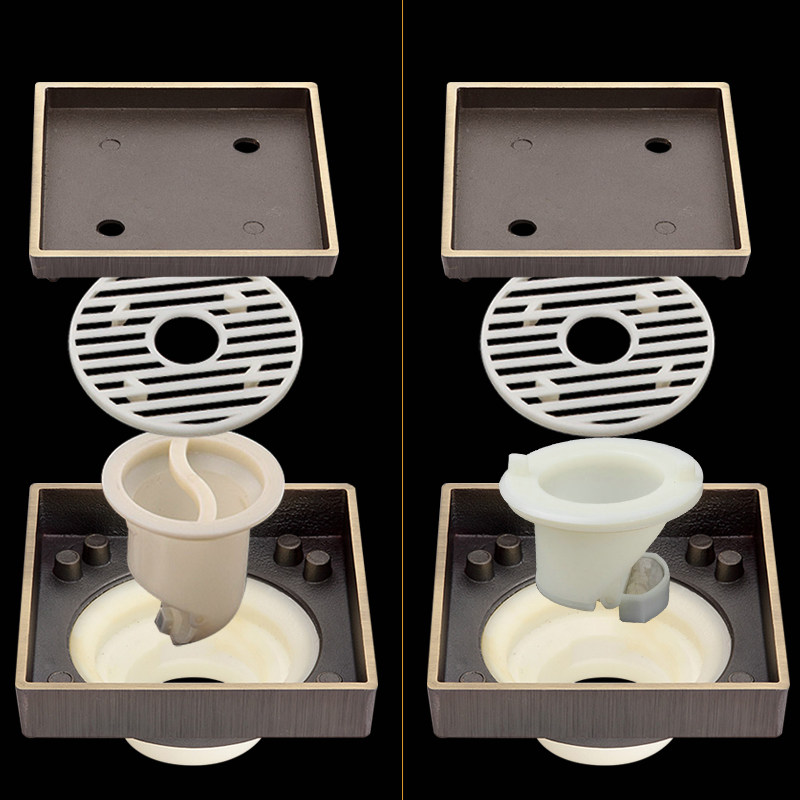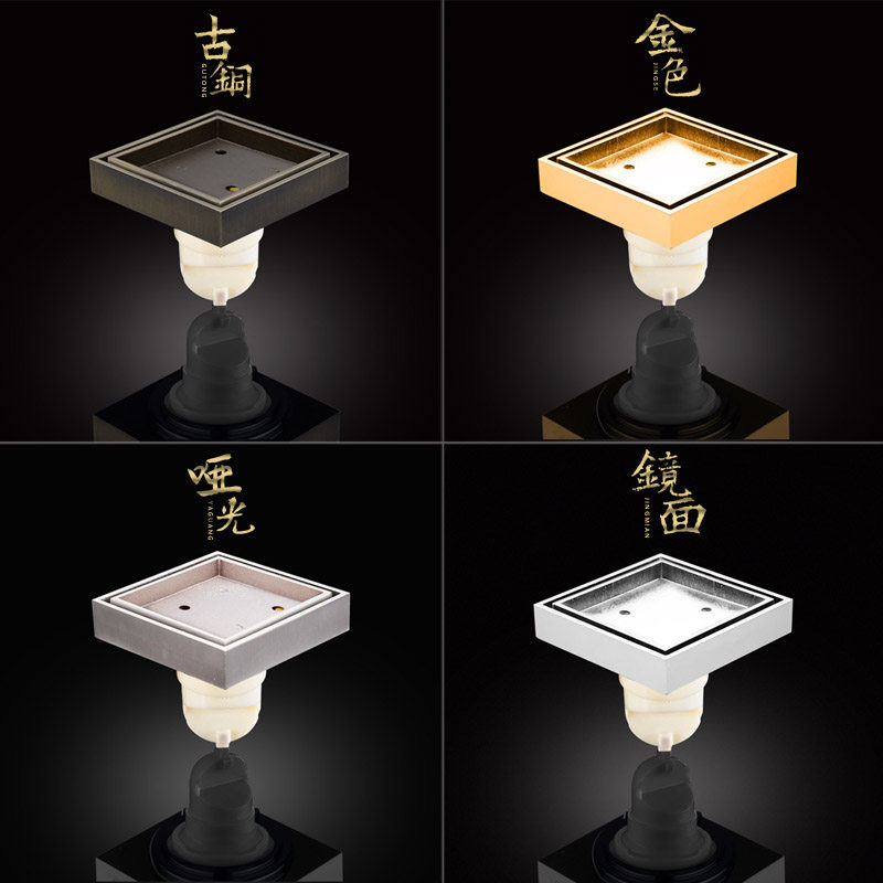 Submersible Deodorant Floor Drain Core Full Copper Official Bathroom Invisible Shower Room Makeup Room Balcony Floor Drain Square Anti-Bug