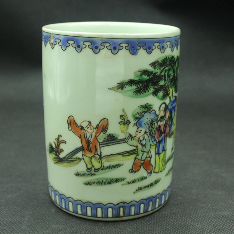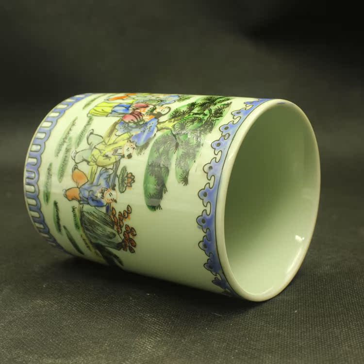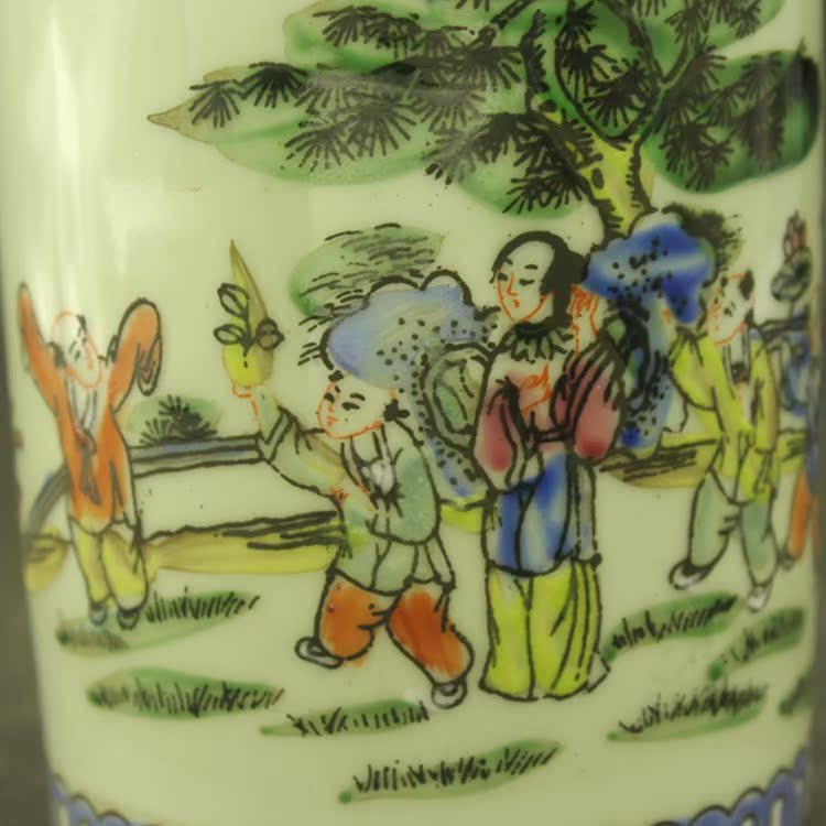 Qingtong Costume Characters Stories Baby Drama Pink Pen Holder Ancient Play Antique Antique Porcelain Home Pendulum Collection