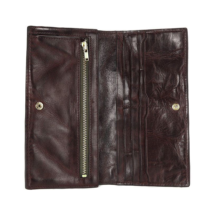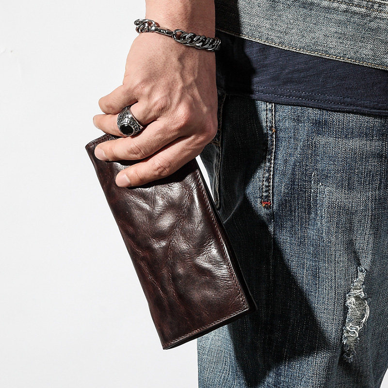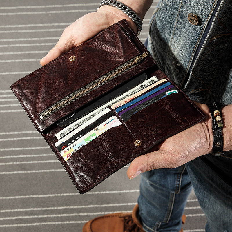 Ultra-thin men's long wallet leather original retro wallet personality tide head layer leather simple young men's wallet