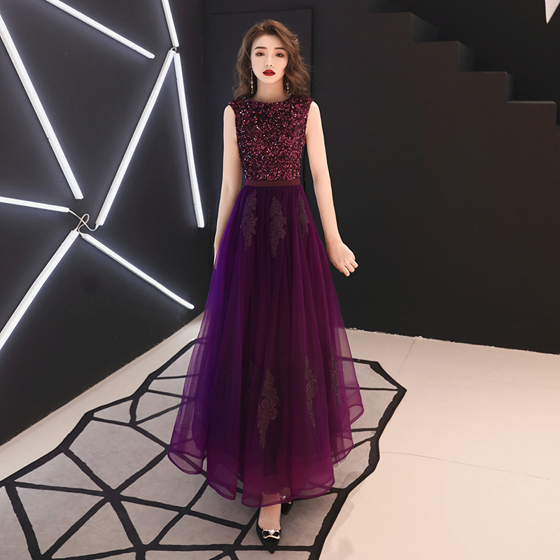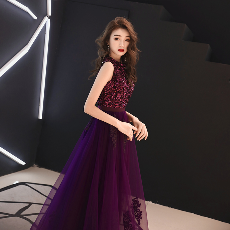 Purple Evening Dresses Dresses Dresses Small Crowd Light Extravagant High-end Banquets Temperament Superior Summer Party Foreign Dress