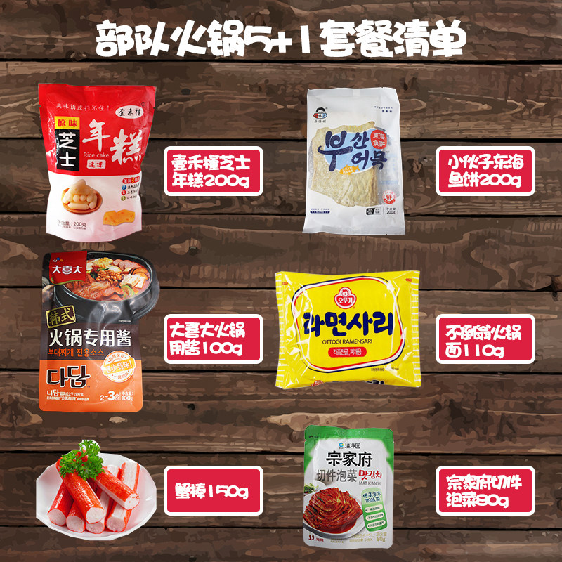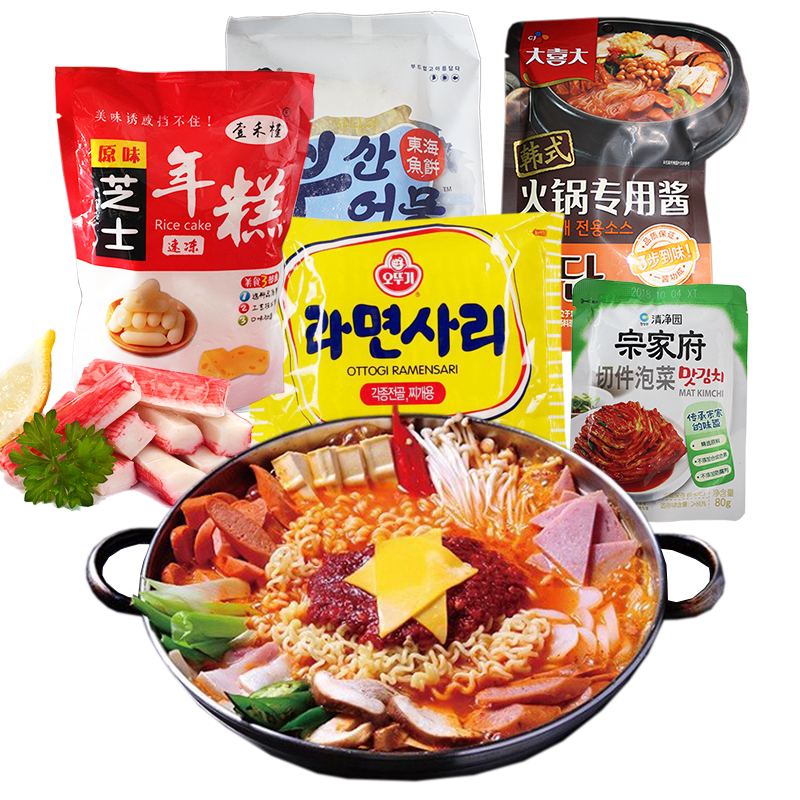 Korean Army hot pot Cheese rice cake set Rice cake hot pot ingredients Crab stick fish cake hot pot sauce Ramen Kimchi set