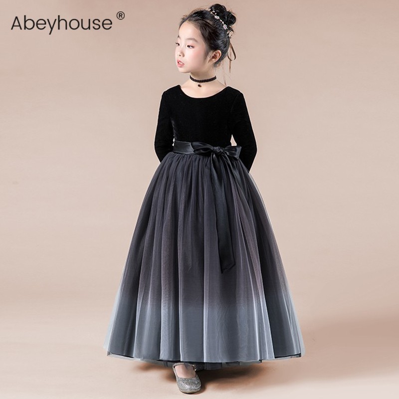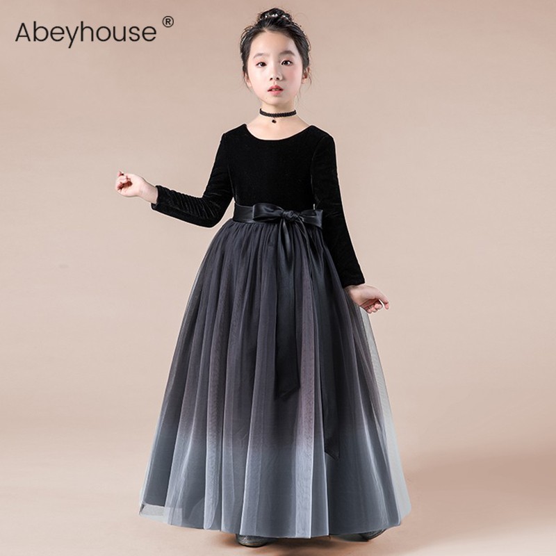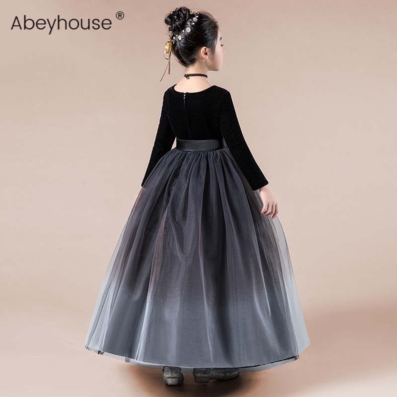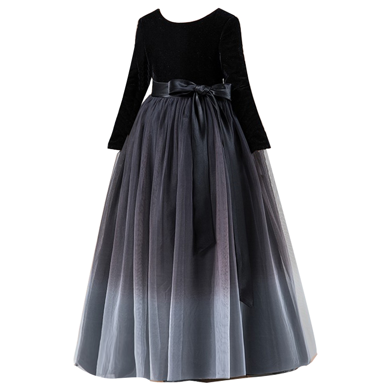 Girls' high-end gold velvet evening dress children's little host piano performance dress long-sleeved birthday princess dress super fairy