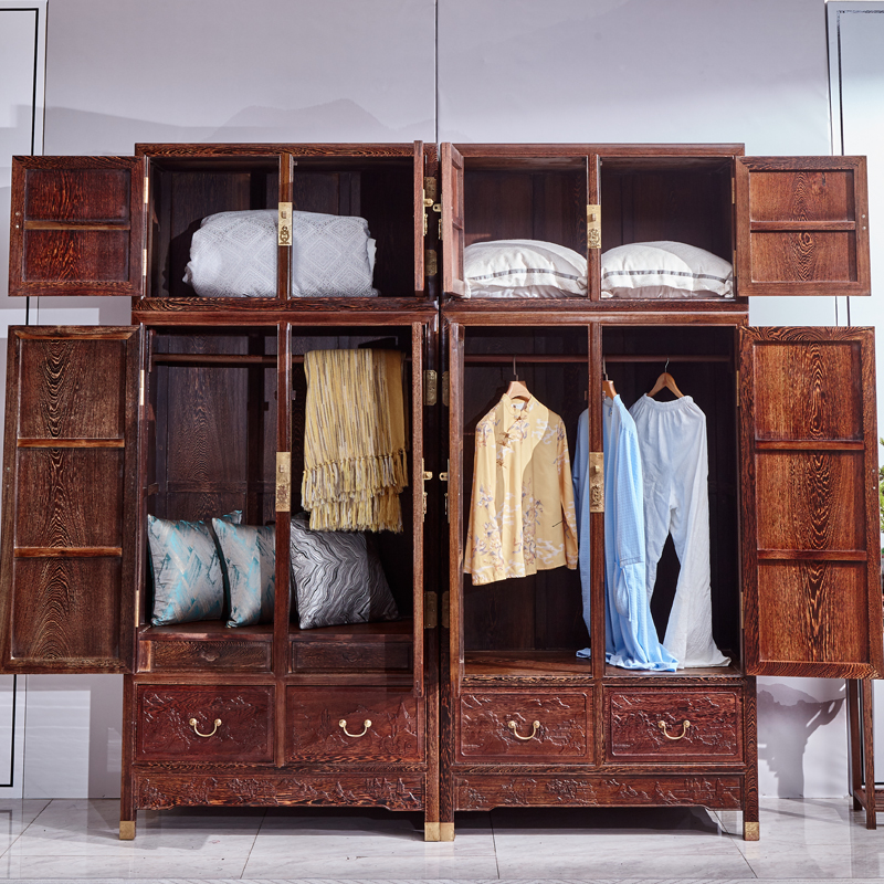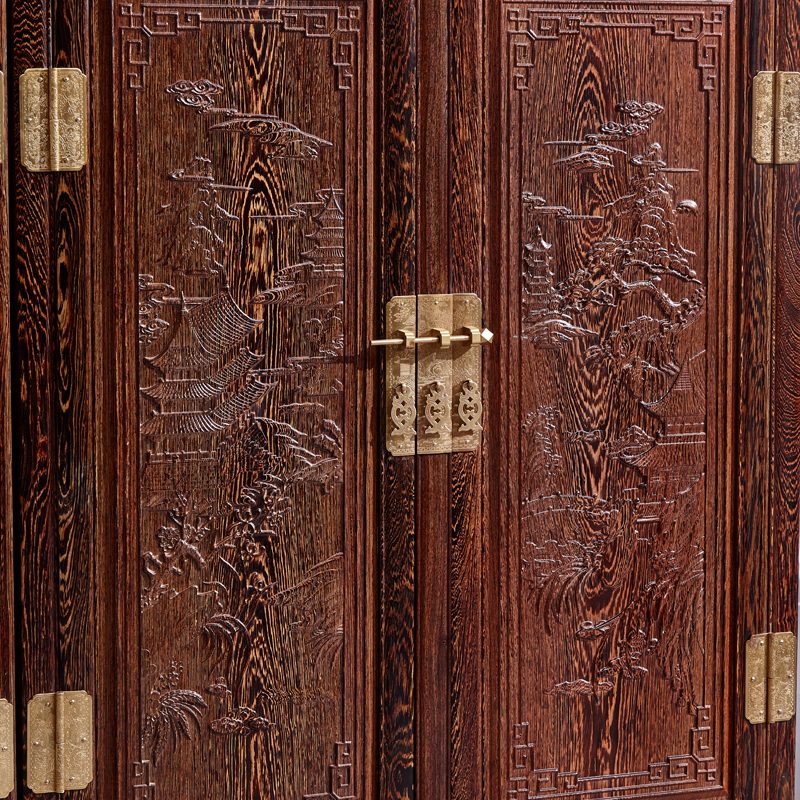 Red Wood Furniture African Chicken Wings Wood Top Box Cabinet Four Doors Wardrobe Landscape Sculpture Flower Wardrobe Solid Wood Large Vegetarian Side Top Box Cabinet-Taobao
