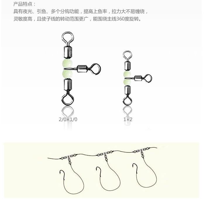 Sea fishing boat fishing three-pronged luminous swivel T-shaped eight-shaped ring extension line string hook line group connector drifting shrimp accessories