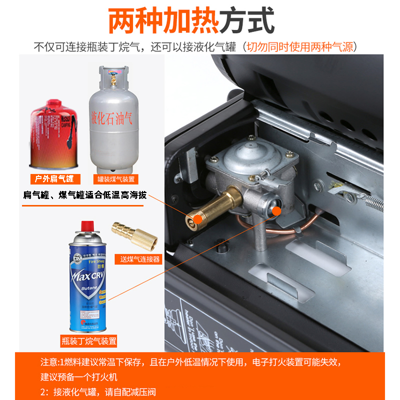 Black dual gas dual heater black double gas dual use + intake tank 4 bottles black double gas dual use + intake tank 8 bottles black three gas dual use + flat gas tank joint + hose black three gas dual use + flat tank joint + 3 bottles 450 gas black four gas dual use + propane transfer tool + hose red double gas dual heater (single furnace) red double gas dual use + intake tank 4 bottle red three gas dual use + flat gas tank joint + hose red double gas dual use + intake tank 8 bottles dark green double gas dual heater (single furnace) Dark green dual gas dual use + intake tank 4 bottles dark green double gas dual use + intake tank 8 bottles dark green three gas dual use + flat gas tank joint + hose black double gas dual use + intake tank 2 bottles 453g solid propane 2 bottles + adapter pulse fresh alpine gas 4 bottles