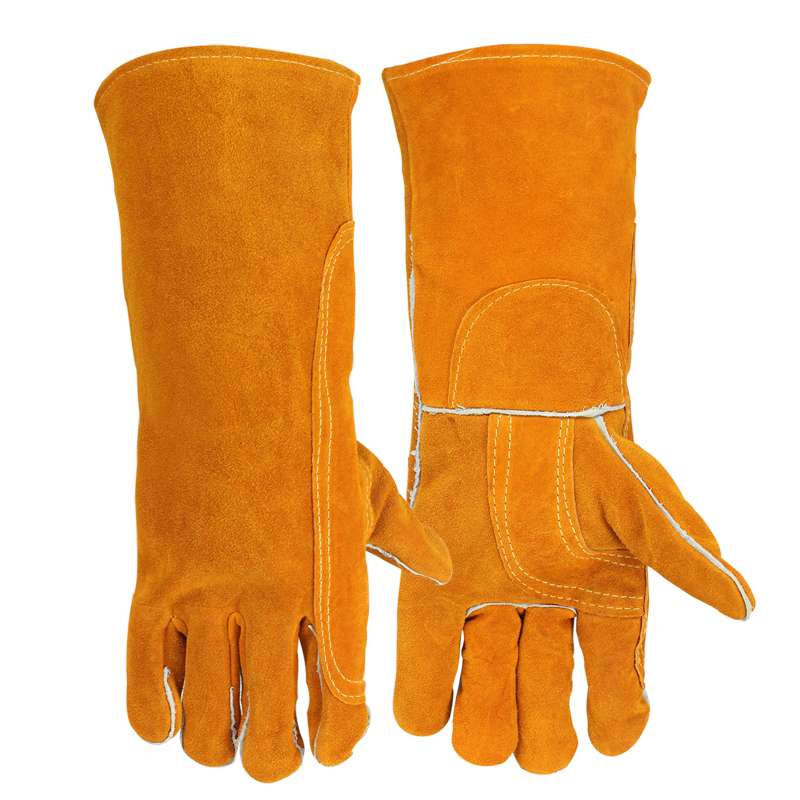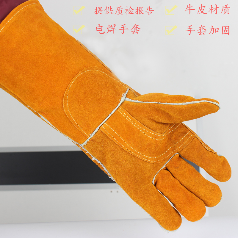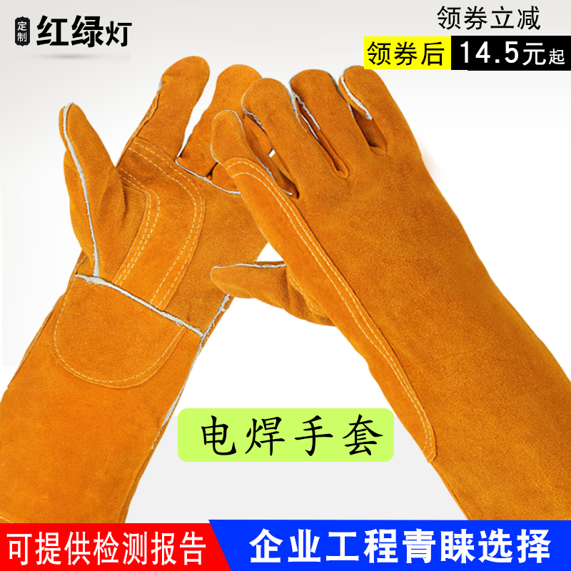 Traffic light Long version 2nd floor full cow leather double layer full cow leather electric welding glove welt welding labor protection gloves