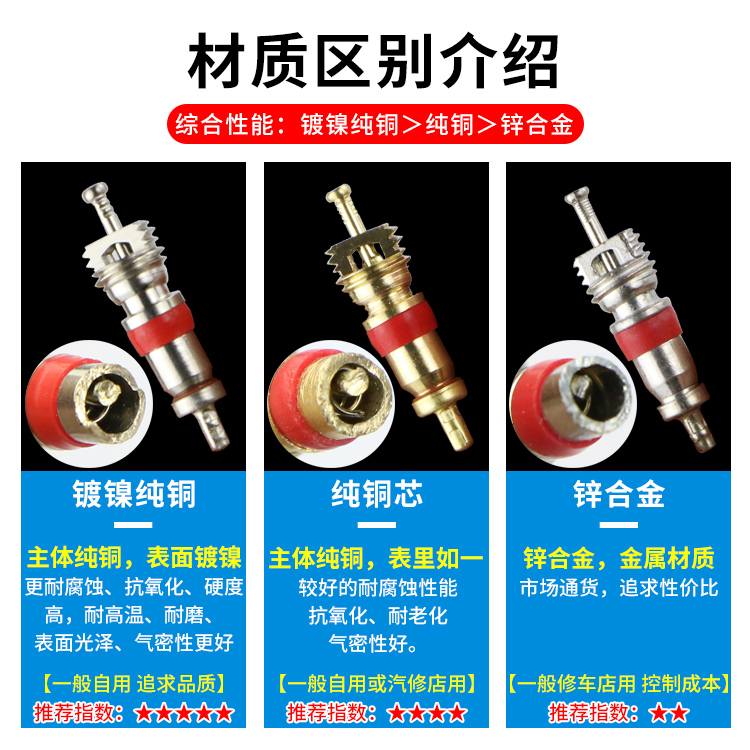Zinc alloy valve core 100 pure copper core 100 nickel plated copper core 100 pure copper core 500 (5 plate) pure copper core 1000 (10 plate) pure copper core