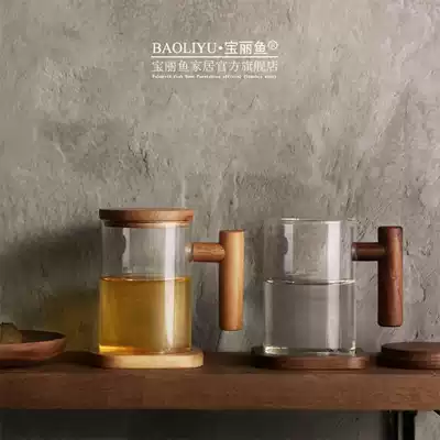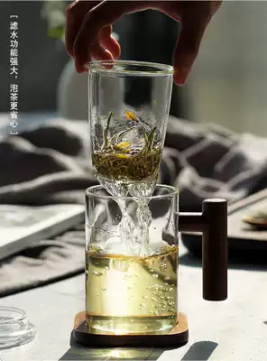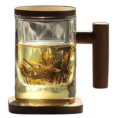 (Clearance wooden Sheng)Heat-resistant glass Office water cup filter with lid Creative tea cup Tea water separation
