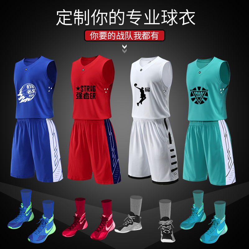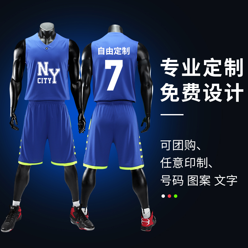 Basketball suit custom retro passer-by king jersey Basketball male student sports training uniform printed breathable suit blue