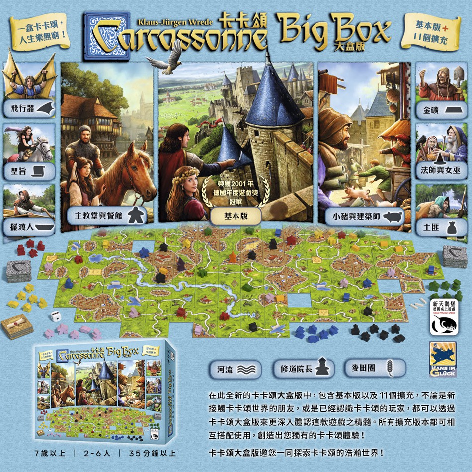 Caccason Large Box Edition (2.0 Base + 11 Small Expansions) (Out of Stock, Waiting for Reprinting) Carcarzon 2.0 (Basic + 2 Small Expansions) Carcassonne Children's Edition