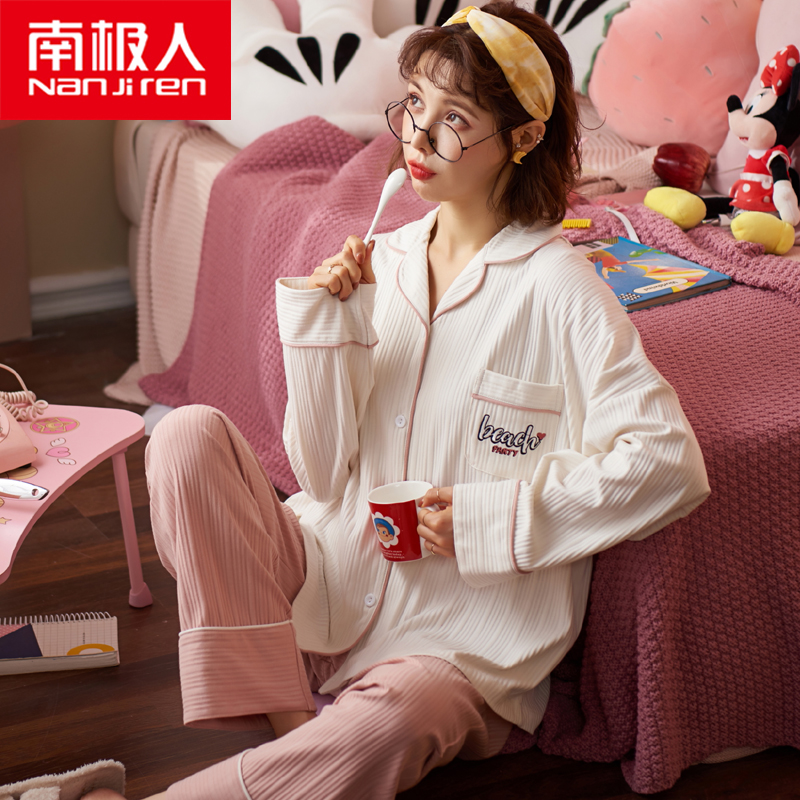 South Pole Pyjamas Woman Spring Autumn Season Pure Cotton Long Sleeve Suit Korean Version Cute Autumn And Winter Money can be worn with loose family clothes