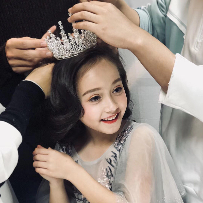 Crown headdress children's little princess Korean girl round crown crystal birthday ornaments festival performance catwalk headband