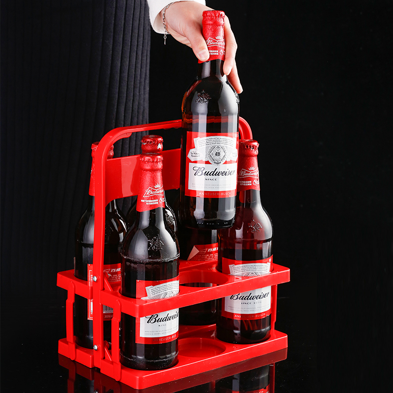 Portable beer basket ktv wine rack Plastic basket foldable wine rack Portable bottle tote box 6 bottle carrying rack