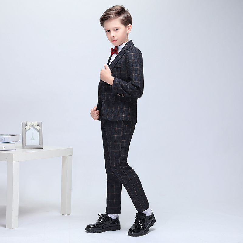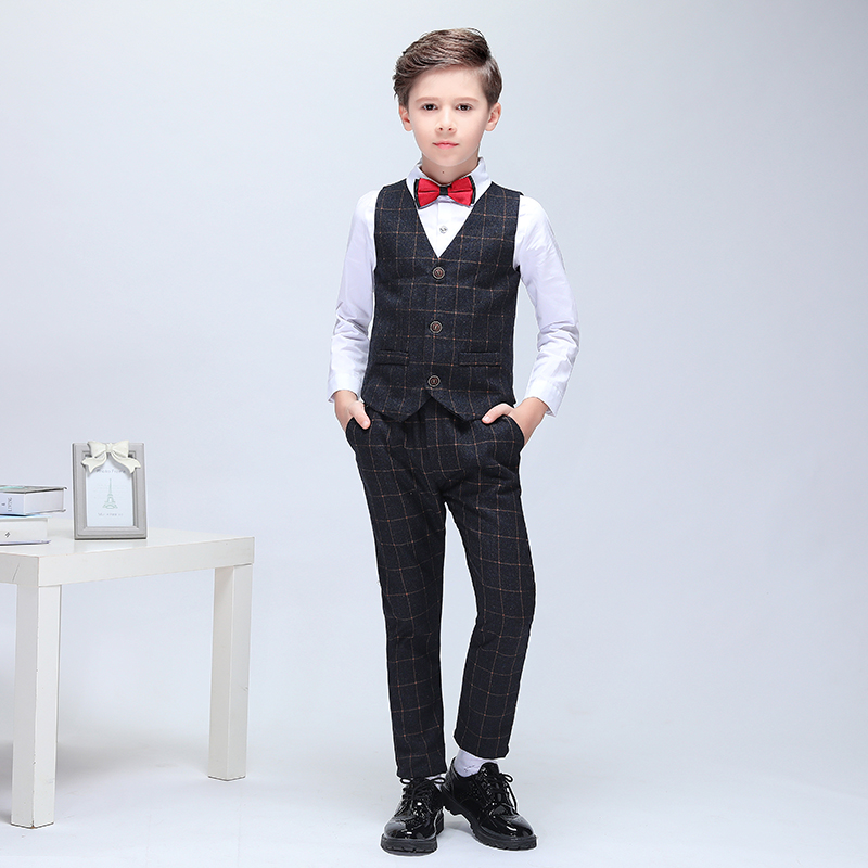 Boy's dress suit children's little suit black plate suit suit black suit horse vest performing costume childhood bride wedding dress