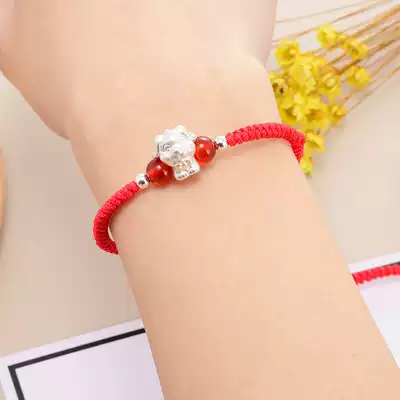 Hand-woven red rope hand female couple male twelve Zodiac is a dog sterling silver jewelry transfer bead gift