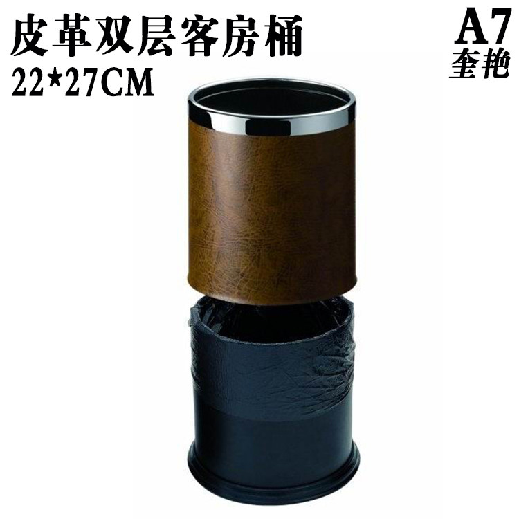 New single-layer leather guest room barrel hotel stainless steel peel barrel hotel home hotel confetti trash can