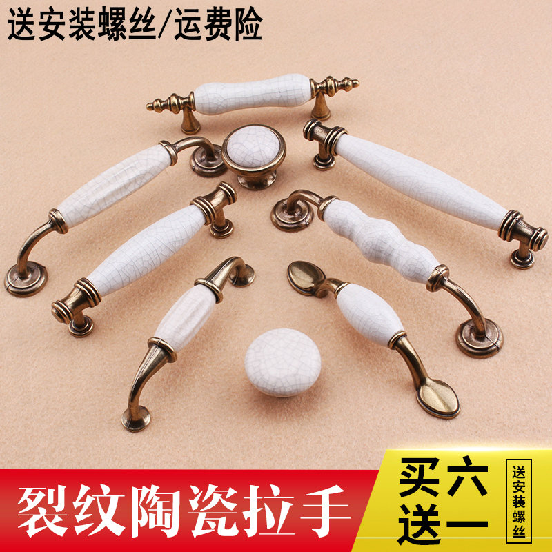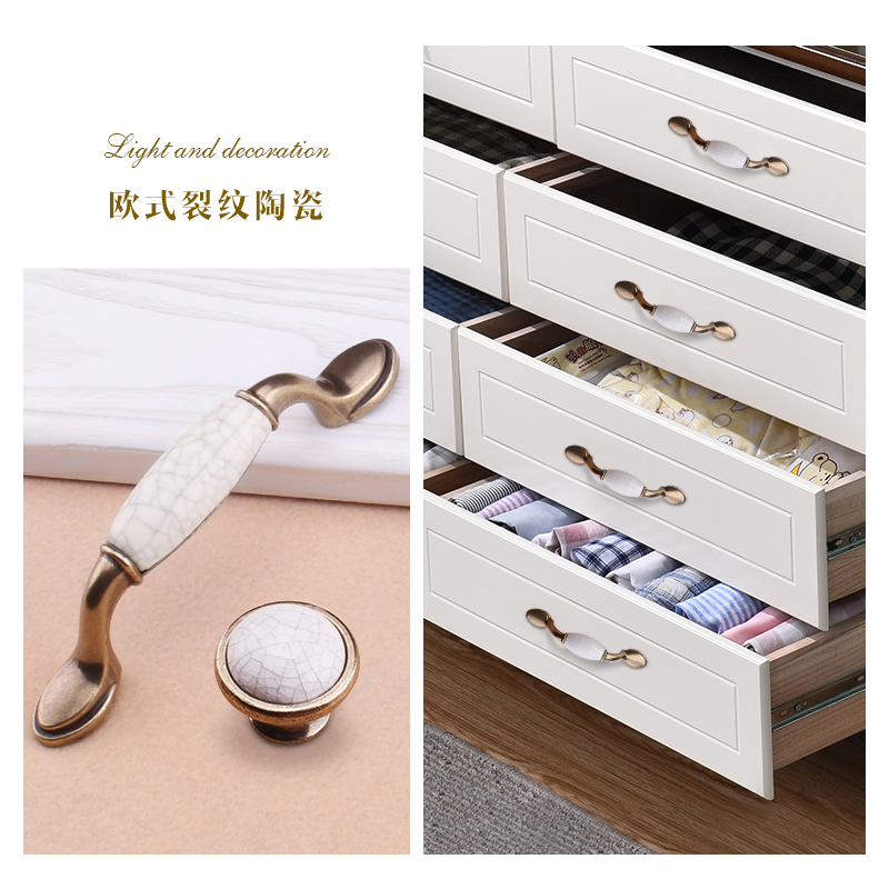 European crack ceramic handdressware door pull handcupboard drawer handle hole of the handle of the handle of the bronze hardware handle