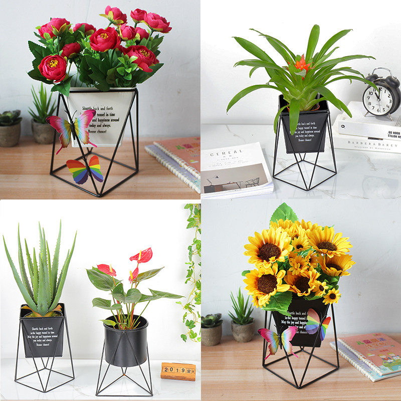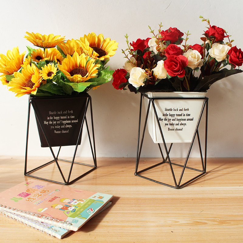 Iron Art Flower Pot Flower Barrel Vase Emulation Flower Green Planting Potted Potted Multi Meat Flower Arrangement Rack Living-room Swing Piece Eurostyle Adornment-Taobao