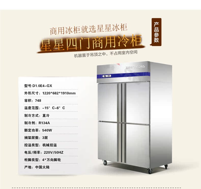 Stars BCD-840E Four Doors Fridge Kitchen Commercial Frozen Stainless Steel Vertical Freezers Refrigerated