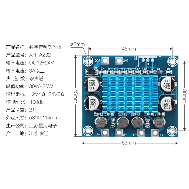 XH-A232 star river HAZY digital audio power amplifier board TPA3110D2 audio amplification module output 30W* 2