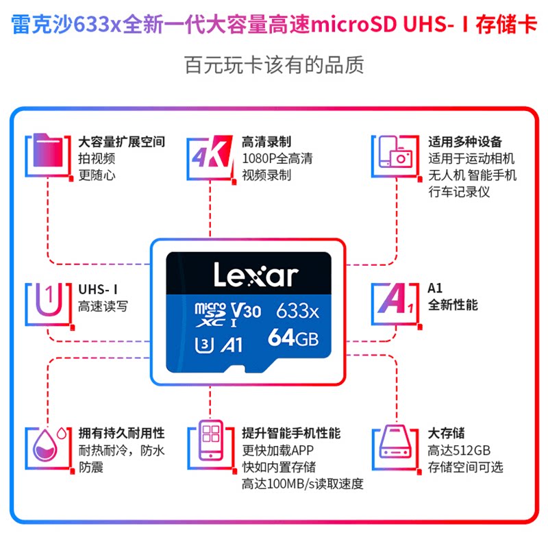 LEXAR Lexar tf card 64g 95m U3 high speed 4K driving record memory card Nintendo memory card mobile phone memory 64G card micro sd card 64G monitor