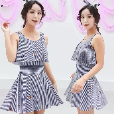 Hot spring swimwear women's one-up boxer pants slim waist plus size stripes fashion conservative swimsuit
