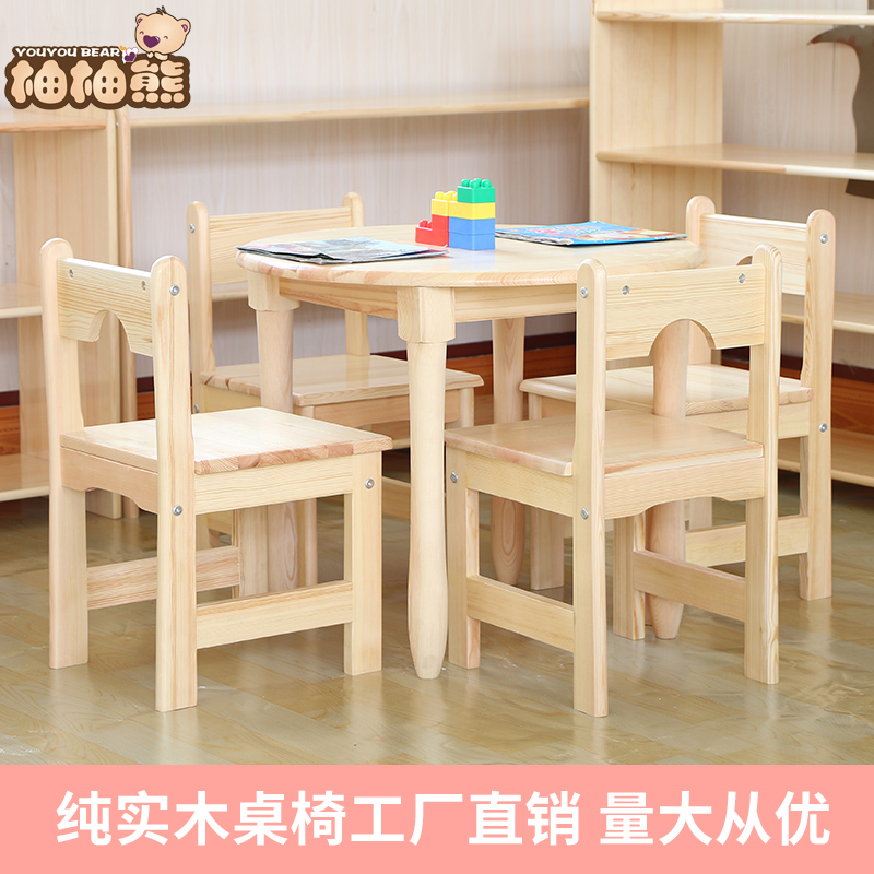 Solid Wood Kids Small Round Table Children Table Kindergarten Table And Chairs Suit Baby Study Table Eating and drawing desk