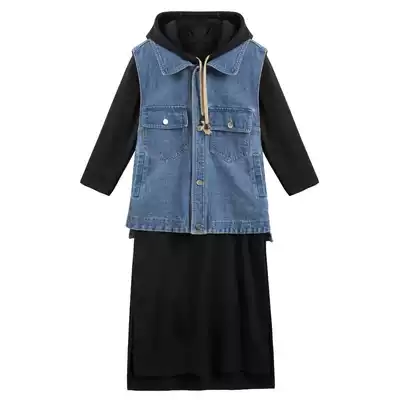 Black skirt (autumn) gray skirt (autumn) gray skirt denim vest (autumn) black skirt denim vest (autumn) denim vest gray skirt denim black pantyhose (autumn) black skirt