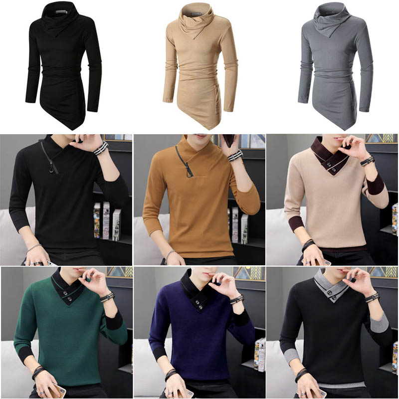 Spring and autumn Han version irregular personality High collar beating undershirt casual wear for men's thick T-shirt High collar hairstylist Trendy Blouse