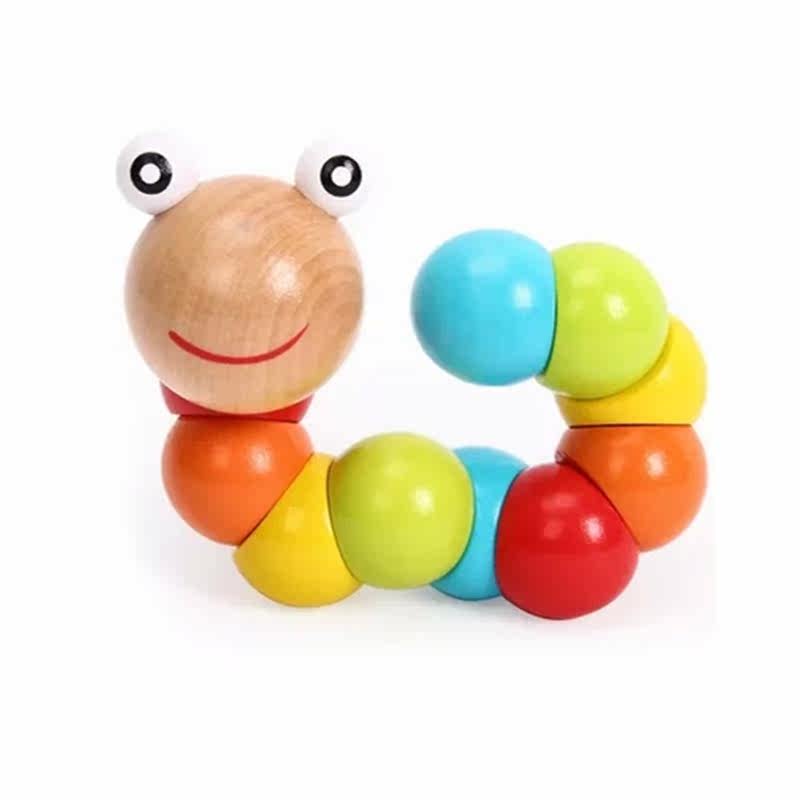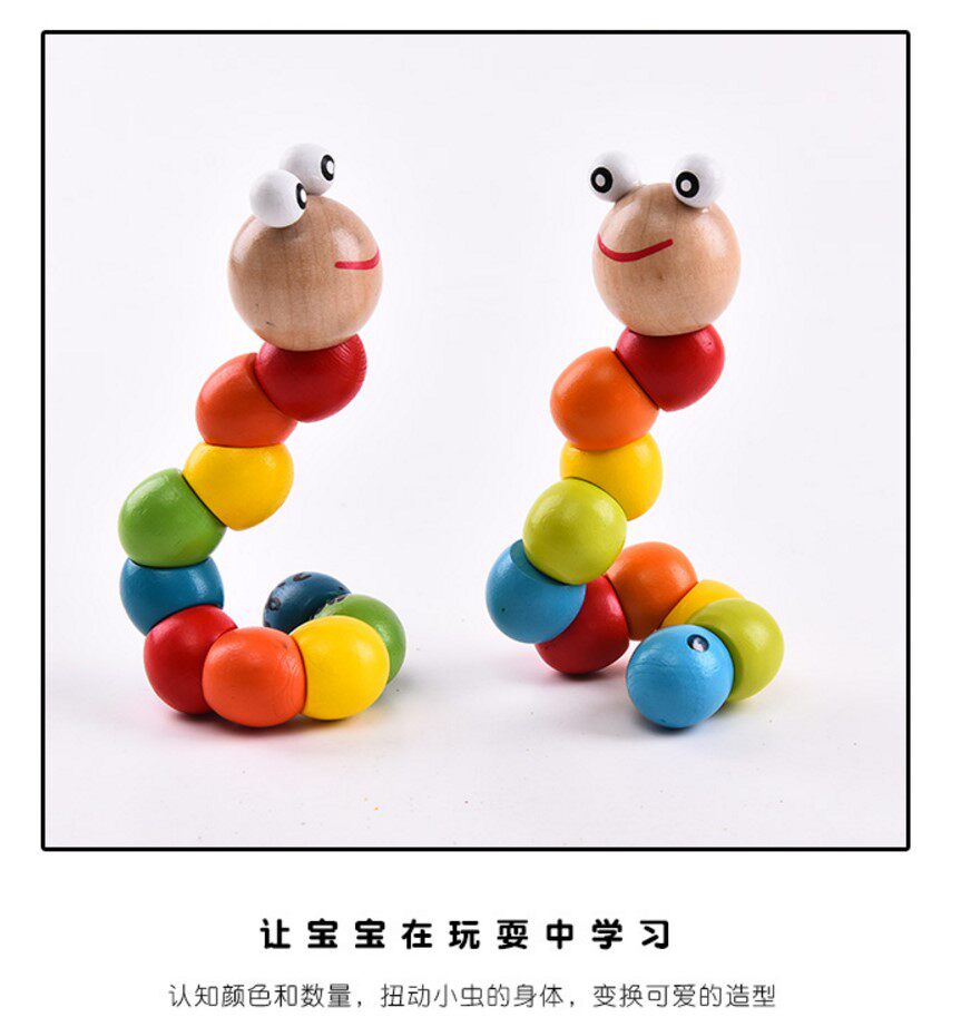 Infant woody toy Puzzle Enlightenment Twist Fur Caterpillar early to teach Color Cognitive Building Blocks Baby String Beads around Pearl