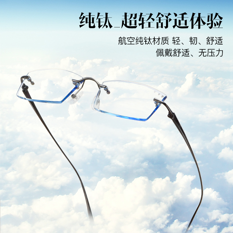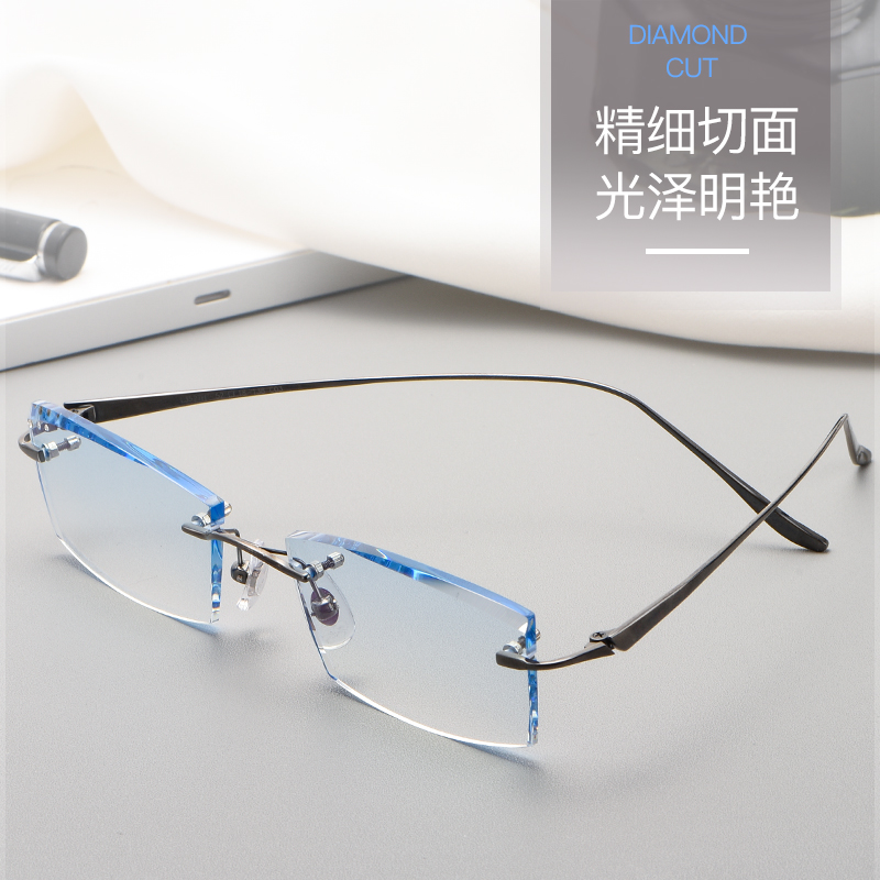 Frameless myopia glasses men's pure titanium ultra-light diamond trimming business anti-blue light color changing myopia glasses men can match degrees