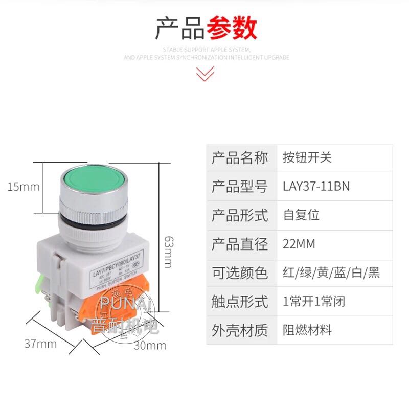 PUSH BUTTON SWITCH LAY37-11 Start STOP switch Y090-11BN NORMALLY OPEN NORMALLY CLOSED 22MM