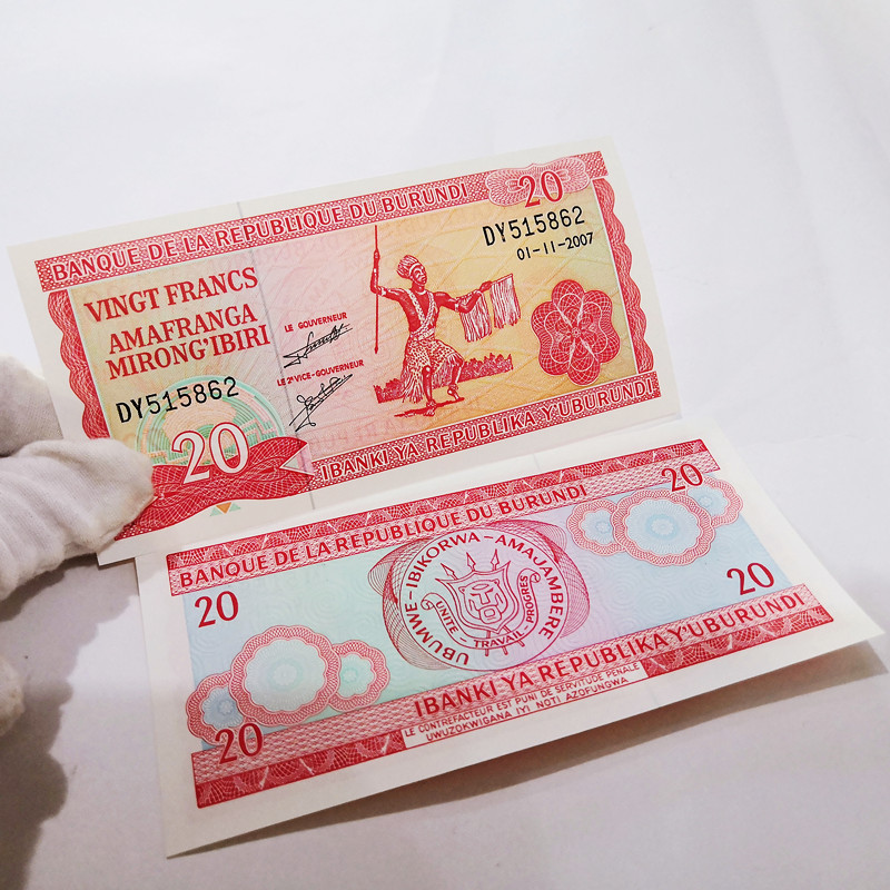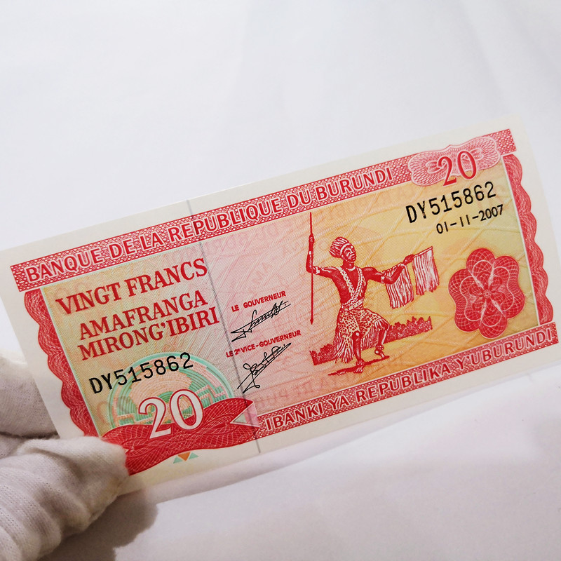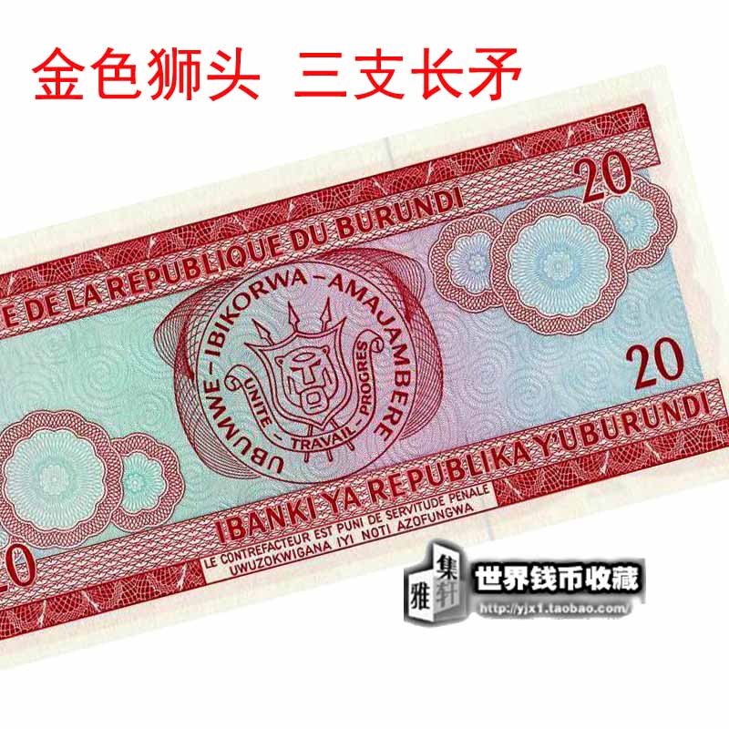 Foreign coin Burundi 20 francs Old version notes Ticket face Unique design Golden Lion Head Spear Real Money Foreign Banknotes