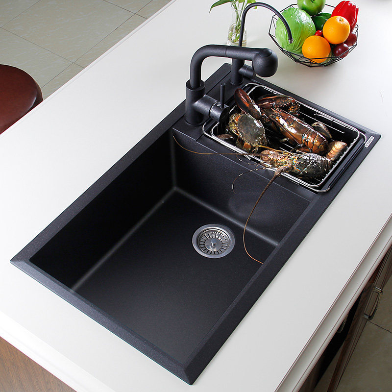 German Mai Sharp Quartz Stone Sink Large Double Sink Black Wash Basin Dishwashing pool Handwashing pool pool Home 880