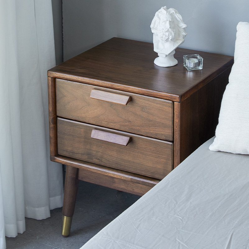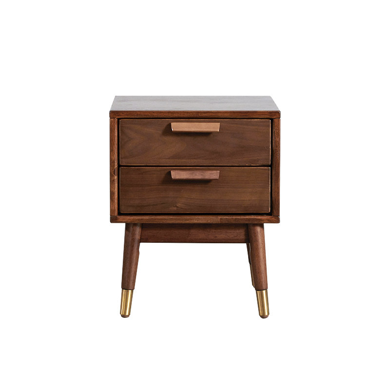 DOJUS Nordic Solid Wood Bed Head Cabinet Double Pumping Bronze Feet Walnuts Modern Minimalist Imported Furniture Bedroom Bedside Cabinet