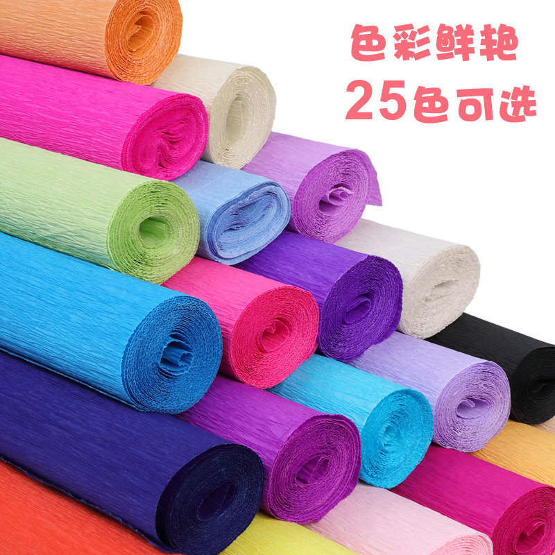 Wrinkle paper handmade flower making material paper diy tool 10 roll set rose origami large sheet bouquet wrapping color paper kindergarten elementary school children thickened rolled color pleated paper