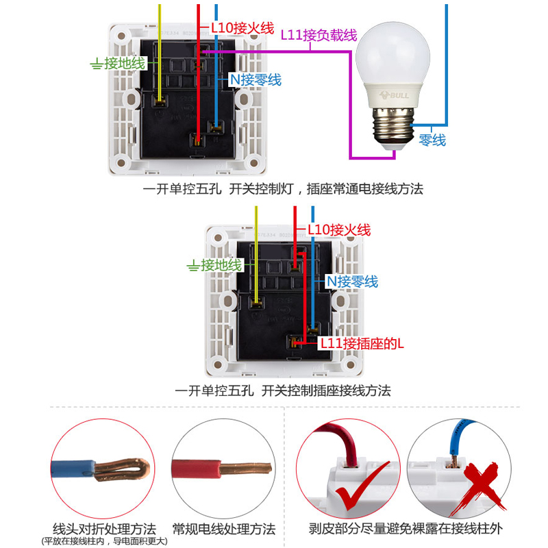 Bull With Switch Socket Panel 86 Type Concealed Power Wall Single Open Single control 1 opening 5 holes Home opening 5 holes