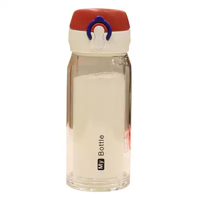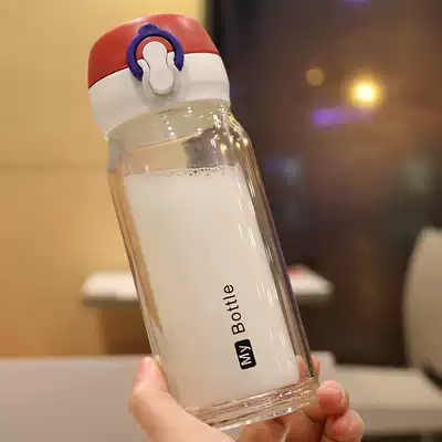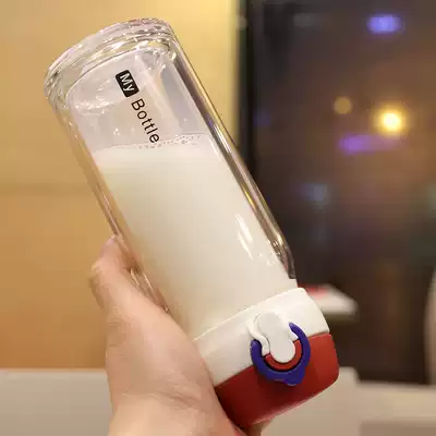 Fresh glass Korean double-layer water cup with lid leak-proof water bottle creative straight drinking cup couple Cup Tea Cup heat-resistant