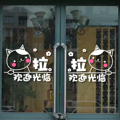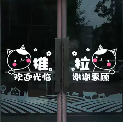 Push-pull mobile door creative sticker clothing shop glass door welcome to visit is in the business label self-adhesive paper