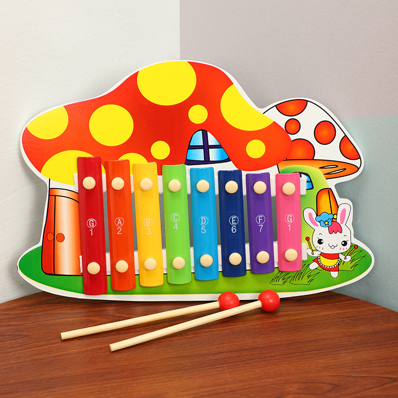 Children's wooden cartoon animal eight-tone percussion piano infant enlightenment music early education educational percussion toy 1-3 years old