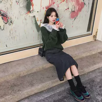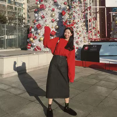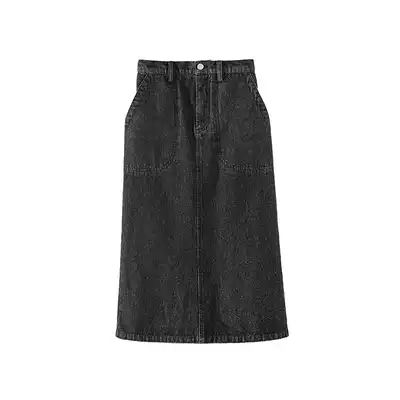 Fan Zhiqiao black denim skirt female mid-length version of spring and autumn ins super fire slit skirt