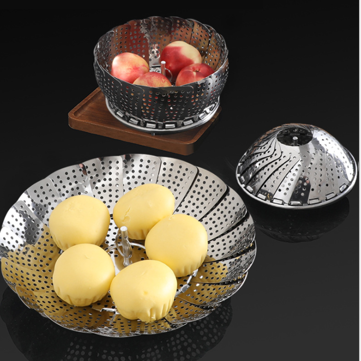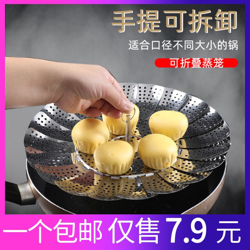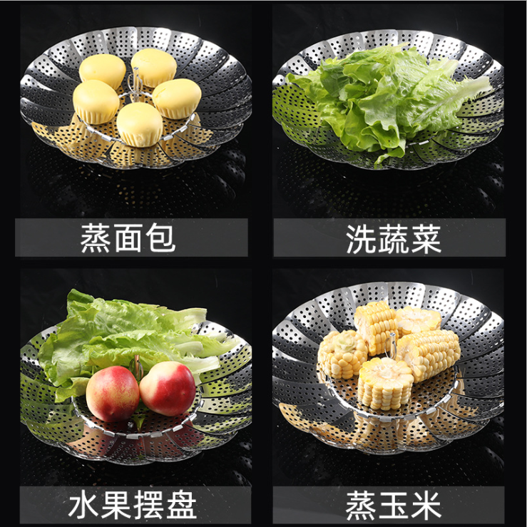 Stainless steel folding steamer tray water-separated steaming grid household steamer steamer steamer pad fruit basket plate small steaming rack