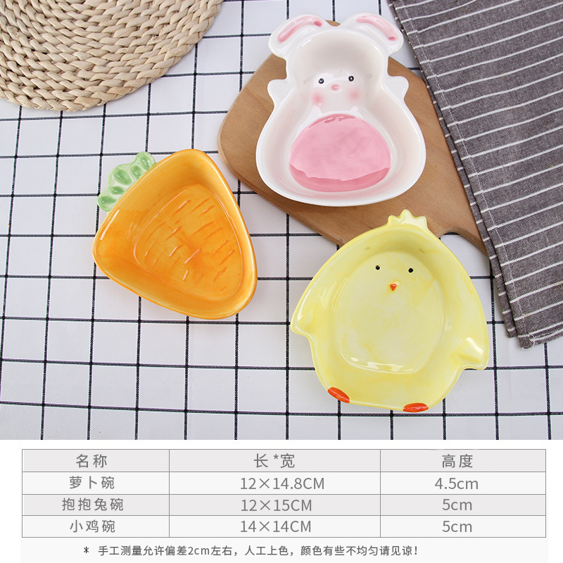 Rabbit anti-gnawing ceramic pot squirrel squirrel bowl lunch bowl cute rabbit carrot chicken