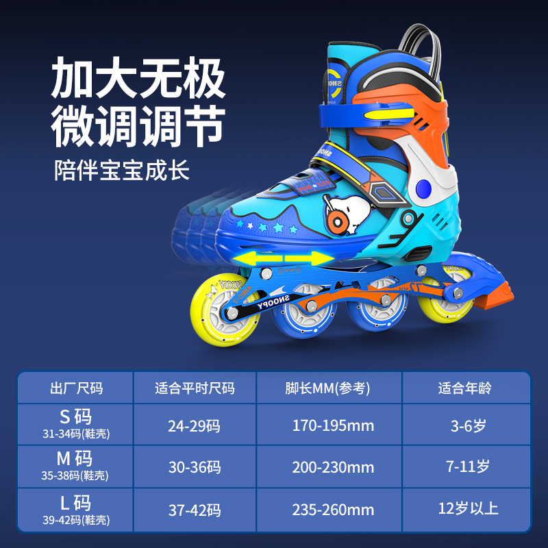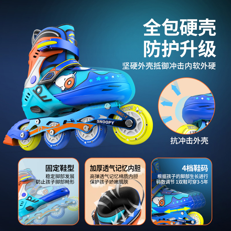 2021 New Snoopy Skates Kids Set Girls Baby Roller Skate Boys Pro Beginner Roller Skates