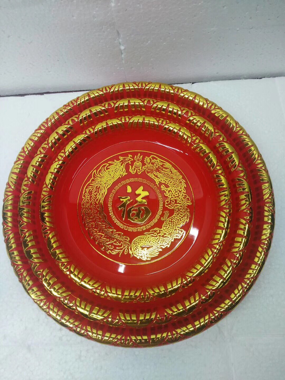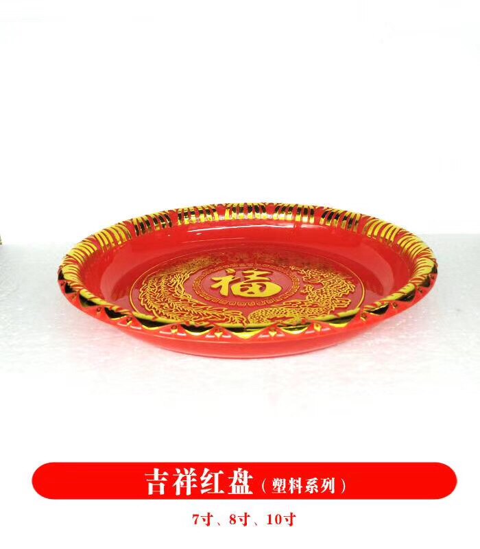 Plastic red plate, big black tea plate, fruit plate, tea plate, dragon and phoenix plate, festive Chaoshan Festival, melon seeds, plastic plate