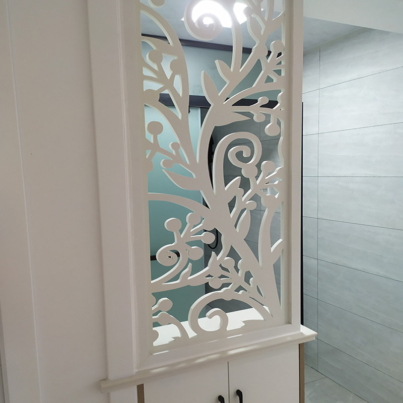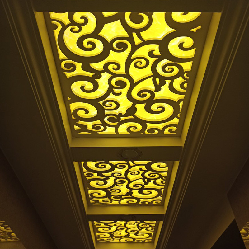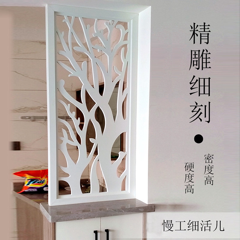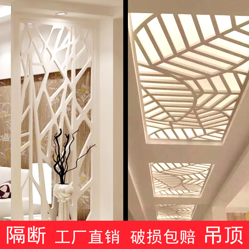 Screen partition Living room entrance through the flower lattice hollow carved board hanging ceiling Chinese solid density pvc wood-plastic decoration