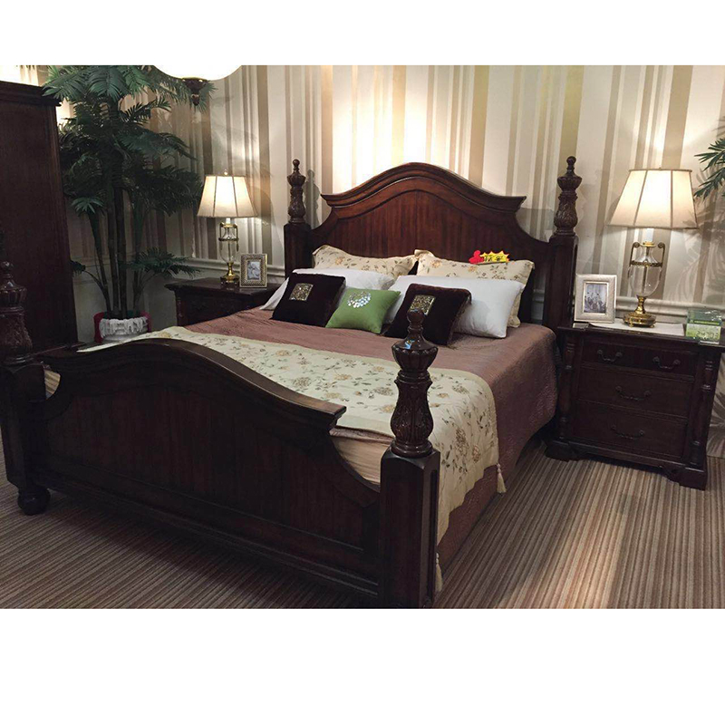 European-style double bed luxury master bedroom dark American-style solid wood wedding bed 1 5 meters 1 8 meters 2 meters solid wood carving king bed